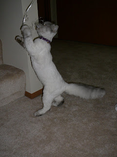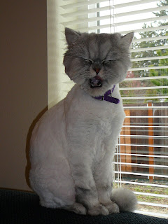 We THOUGHT she was getting a Lion Cut … I had asked the groomer to trim around her neck/collar area because her fur was REALLY long and getting mats I had to cut out and go ahead and trim the rest of her down a bit including her tail… But when we took her out of the box at the groomer to check her out she was NAKED!!! hahahaha.. she looks hysterical, we love it! She has legs! And a neck! And a tail! We’ve never seen that before!
