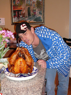 Joseph having some intimate time with the really good turkey he deep fried. it was So good!