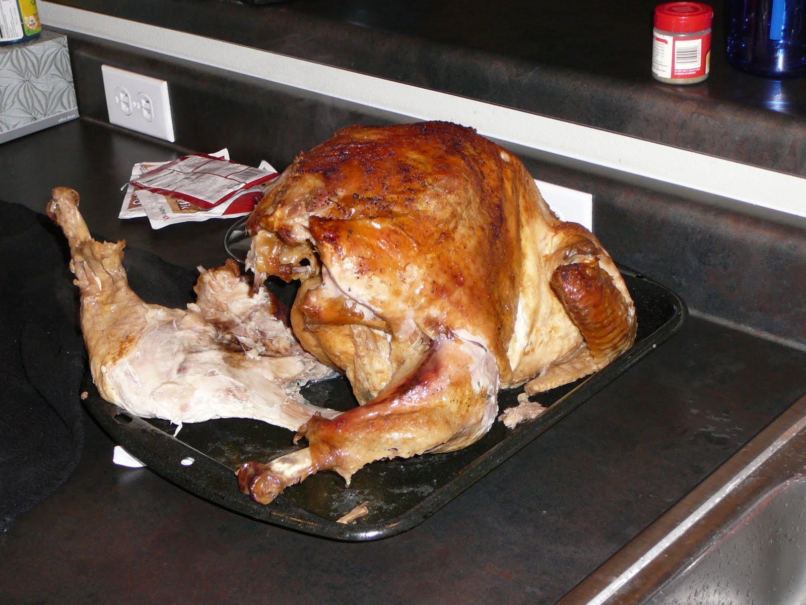 We celebrated Thanksgiving #3 today. This was only the 2nd turkey I’ve ever made but it turned out VERY tasty even though it finished cooking 2 1/2 hours ahead of schedule! Here’s Tommy before…..