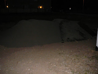 It took an act of God to stop us from working in the yard but we dumped the last load of rock in the flower bed and within a minute it was pouring down rain. Guess we’re done for the day… Next we get to plant the 2 small trees/shrubs in back then spread all this dirt below to seed and grow grass. Hopefully we can get it spread, rolled, seeded, fertilized and watered this week!