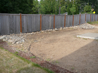 We spent about 3 hours rock raking and raking by hand to get the yard ready for topsoil next week.